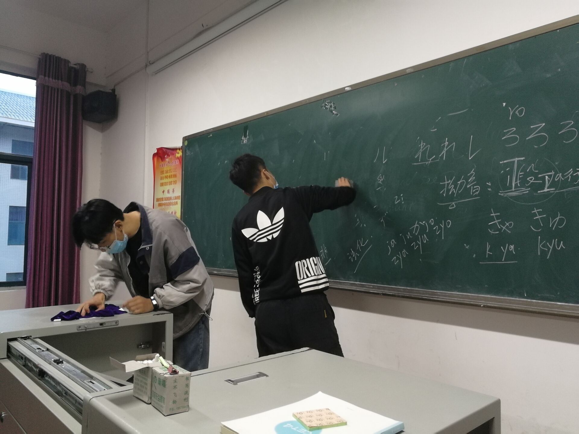 (电信系 邓从花 王琳琳)9月21日晚,电信系学生党支部全体党员分为8个小组,对四号教学楼各个教室的粉笔灰进行了清理并打扫了教室。