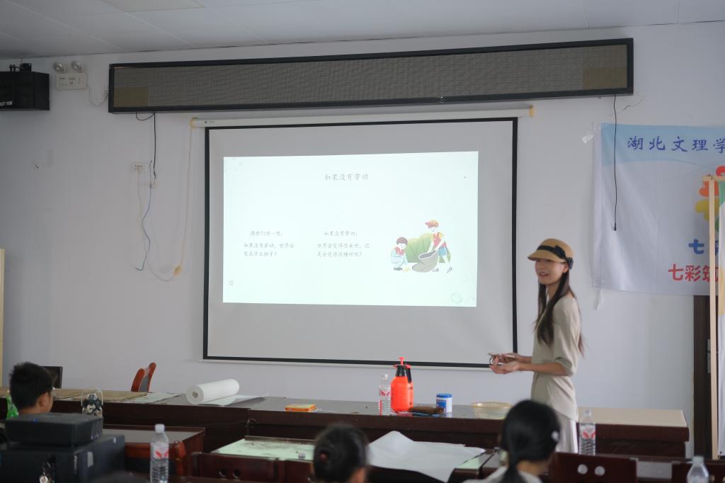 (通讯员:万小月、彭嘉丽)7月10日上午,伟德bv1946官网“七彩志愿者联盟”为水洼社区的儿童带来了一堂生动有趣的劳动教育主题课。志愿者彭嘉丽担任主讲老师。