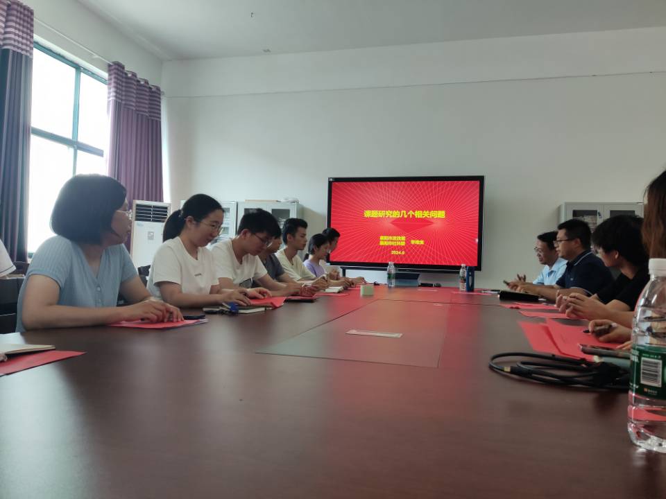 (电信学院 周莉)6月25日,襄阳市发改委主任李地宝莅临电信学院,于231会议室与学院师生进行了一场主题为“课题研究中的申报、参评及研究要点”的经验分享座谈会。此次座谈会旨在提升学院师生在科研项目管理与执行方面的能力和经验,促进学术团队与政府部门之间的交流与合作。