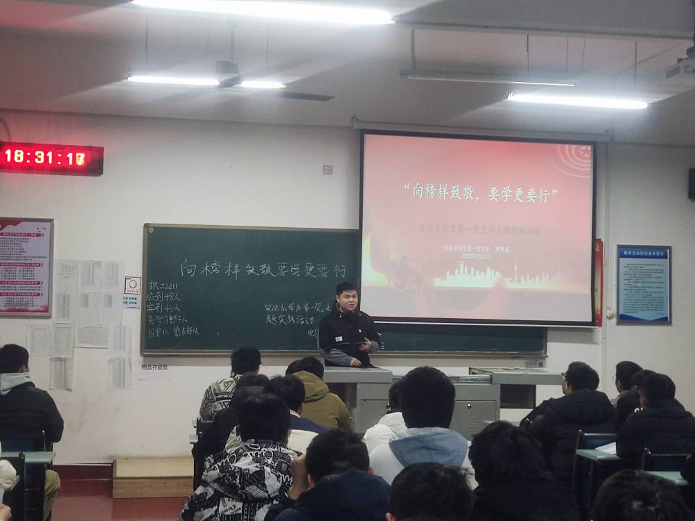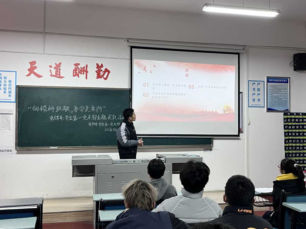 榜样的光芒照亮后来者的征程,伟大的精神激发奋进前进的力量。学生党员利用晚自习时间深入大一教室与寝室,利用PPT、故事会带领新生深入学习、领会榜样身上所体现出来的优良品质以及优良作风,帮助同学们树立学思笃践,展现奋力前行,无畏困难的新青年形象。