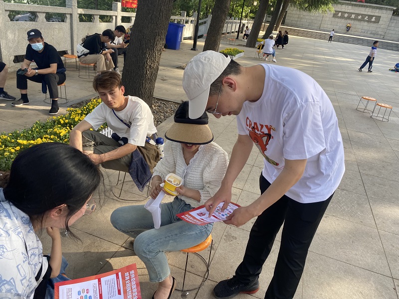 随后,学生党员移步陵园一角,通过发放宣传单、现场讲解等方式向周边市民与游客普及国家安全相关法律法规,呼吁市民提高对国家安全的认识,以实际行动维护国家安全。