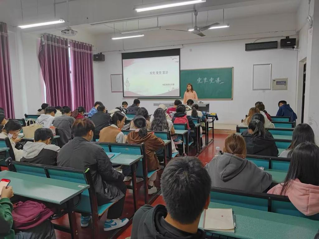 彭亚岚书记从中国共产党的成立、中国共产党的发展历程、中国共产党的根本宗旨三个方面,深入浅出地讲述了中国共产党诞生并带领全国各族人民从站起来,到富起来,到强起来的发展历程。她强调作为一名学生党员、一名学生干部要用党的二十大精神武装头脑,坚定不移听党话、跟党走,坚定理想信念,练就过硬本领,立志做有理想、敢担当、能吃苦、肯奋斗的新时代好青年。