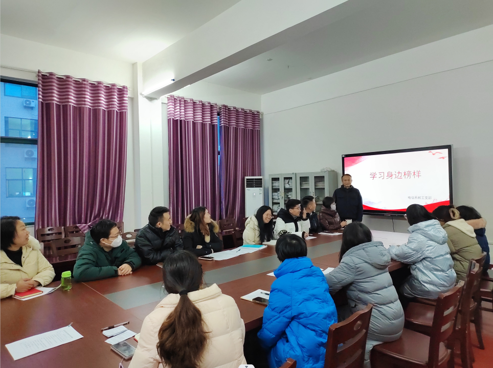 (电信系 朱艳艳)为深入推进学习贯彻习近平新时代中国特色社会主义思想主题教育,进一步教育引导全体老师以身边榜样为镜,向先进典型看齐。12月14日下午,电信系教工支部组织开展“学习身边榜样”故事分享会。