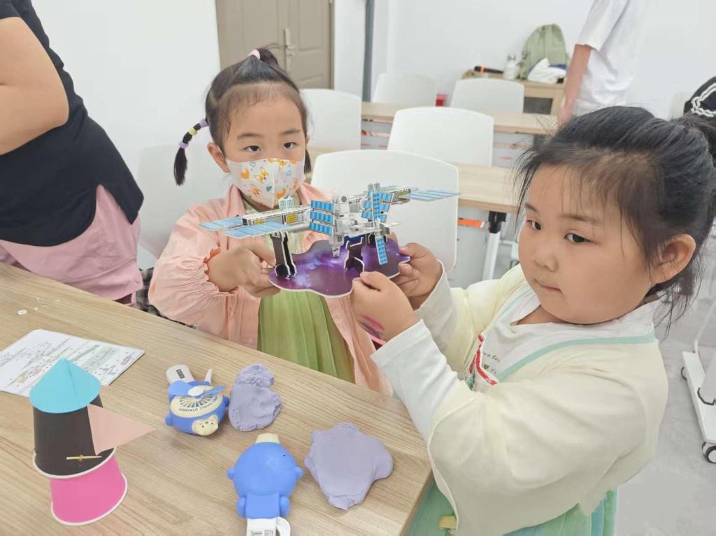 超轻粘土制作环节是孩子们的创意舞台。他们化身“航天小工匠”,将阅读中的抽象航天知识转化为具体作品。制作宇航人时关注宇航服细节,联想到太空环境知识;制作小火箭时设计独特外形,加深对航天器结构的理解。一件件作品是创意与阅读成果的融合。