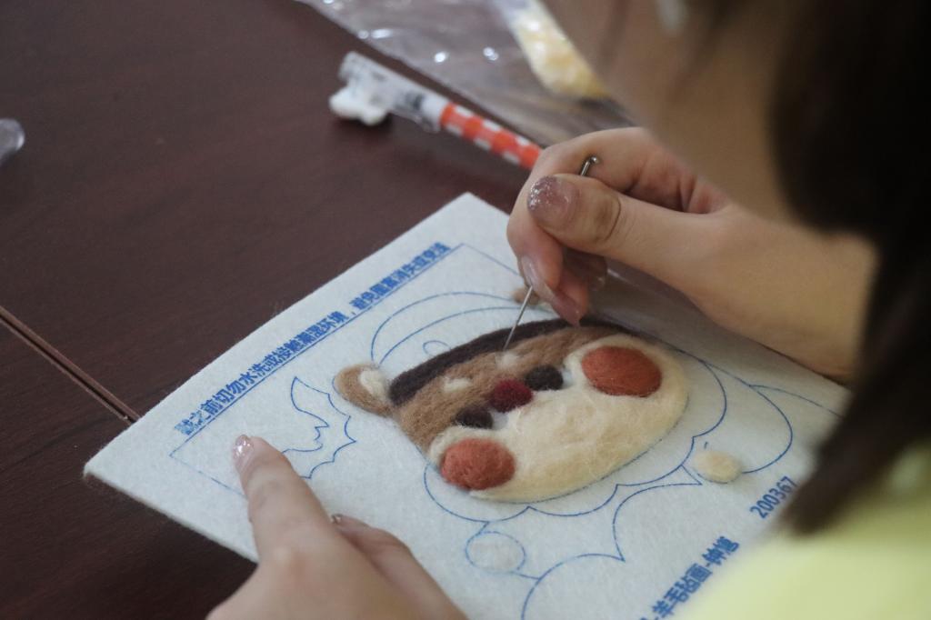 在王琳琳老师的带领和指导下,老师们积极参与羊毛毡立体画的制作中。戳戳戳,一团团凌乱的羊毛,在大家不断的DIY创作中逐渐成型,不一会儿一个个可爱的人物,便呈现在眼前。