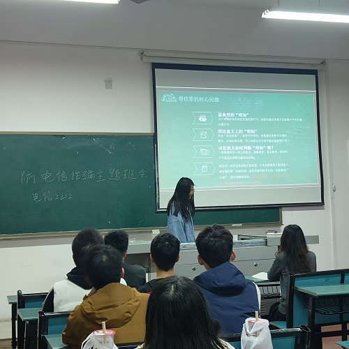 (电信系 刘新)为了增强学生防电信诈骗的意识和能力,构建平安和谐校园。4月14日晚电信系开展了防网络电信诈骗主题班会。