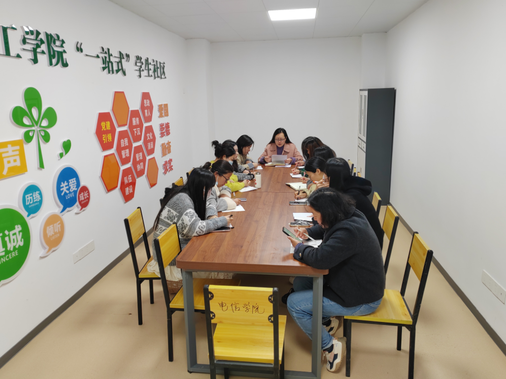 (电信学院 李颖)为高效落实学校相关会议精神,进一步推进“一站式”学生社区建设,电信学院于2024年3月28日在学生社区多功能活动室召开四月份学生工作研讨会,会议由学院党总支书记李颖主持,全体辅导员参会。