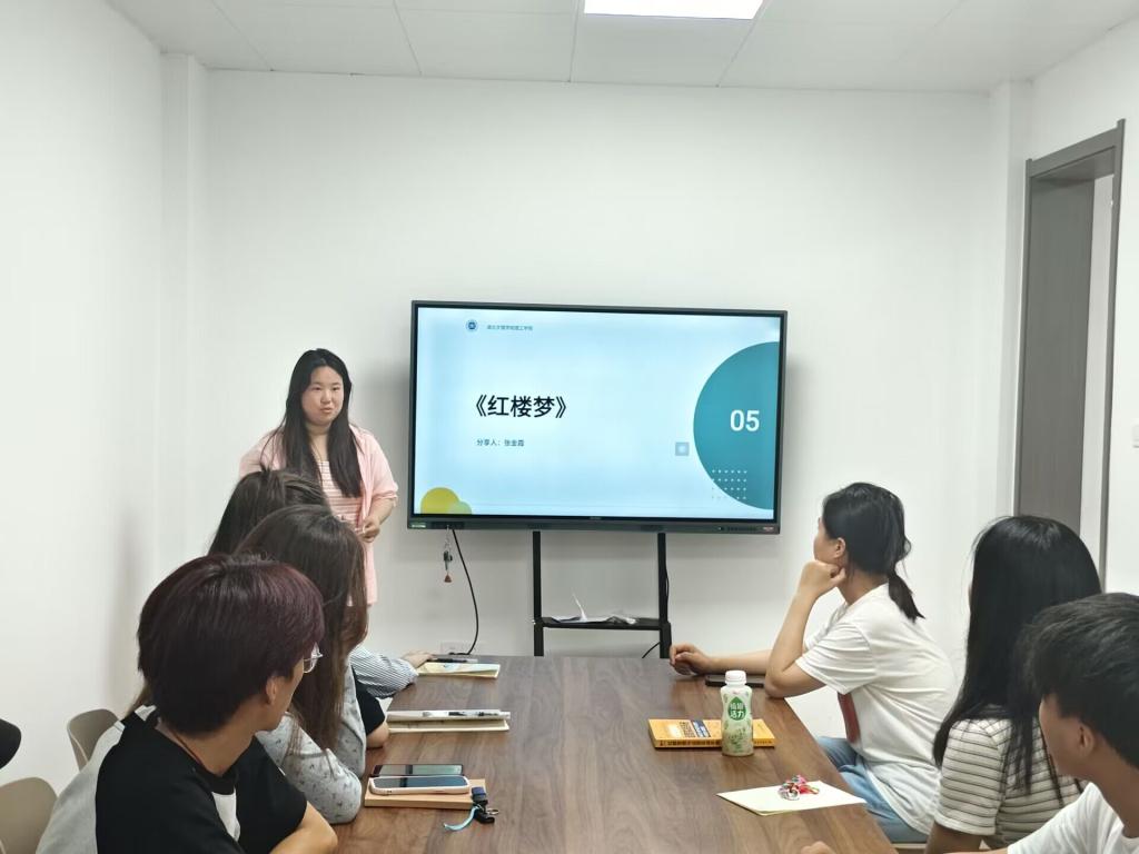 分享会中,邓秋婷老师组织大家将自己喜欢的书籍带到分享会上,同学们通过ppt向大家展示自己总结的书本内容,从书籍中获取到的感悟以及在书中摘抄下来的好句分享。