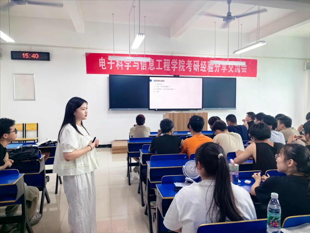 (电信学院 刘圆鑫)为进一步营造浓厚的考研学习氛围,激发考研学生的备考热情和斗志,加强电信学子对考研政策的了解,科学掌握备考方法,6月13日下午,电信学院在一教207教室举办考研分享交流会。本次活动邀请了邓文韬、熊奥、刘雪晴三位考研成功的优秀毕业生,为电信学院的学弟学妹们带来了丰富的考研经验分享。