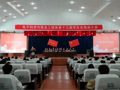 (电信系张君怡)为汲取新鲜血液,培养新一批学生干部,并充分发挥学生队伍的作用,电信系于11月8日在大学生活动中心报告厅隆重举行电子科学与信息工程系第十三届学生会换届大会。