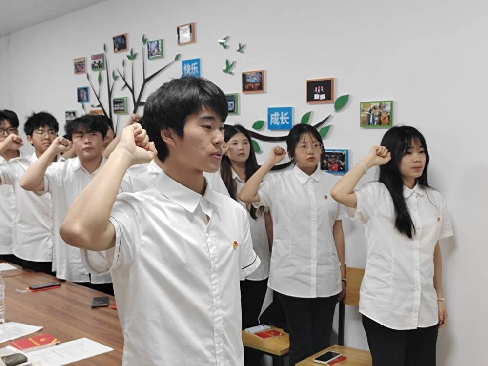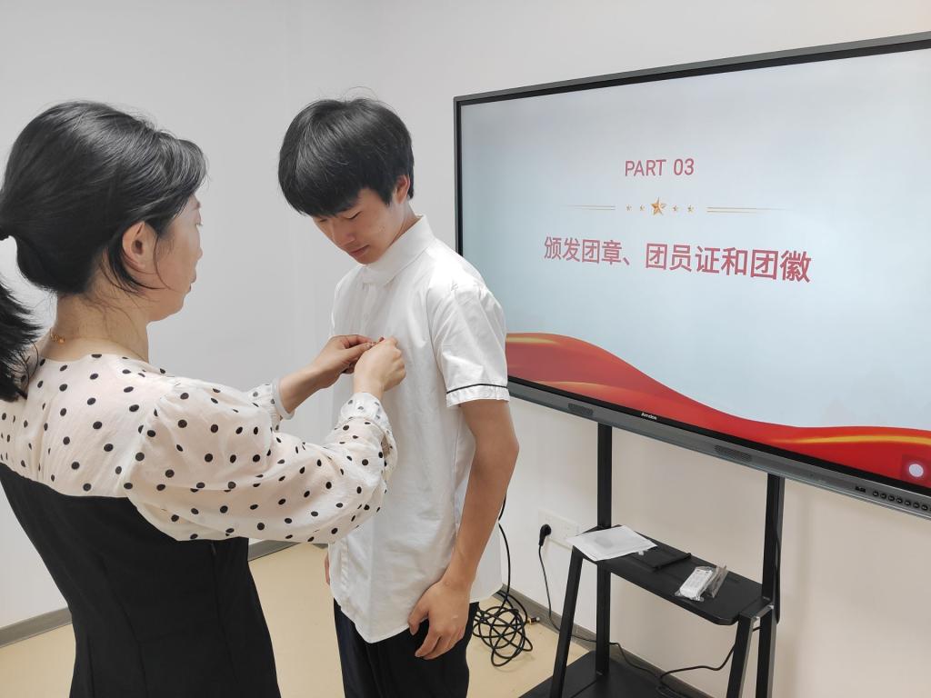 仪式在庄严的国歌声中拉开帷幕。李家豪宣读了新团员名单,王琳琳老师为新团员颁发团章,佩戴团徽。新团员面向团旗庄严宣誓,洪亮的宣誓声音透露出身为一名共青团员的自豪与坚定。