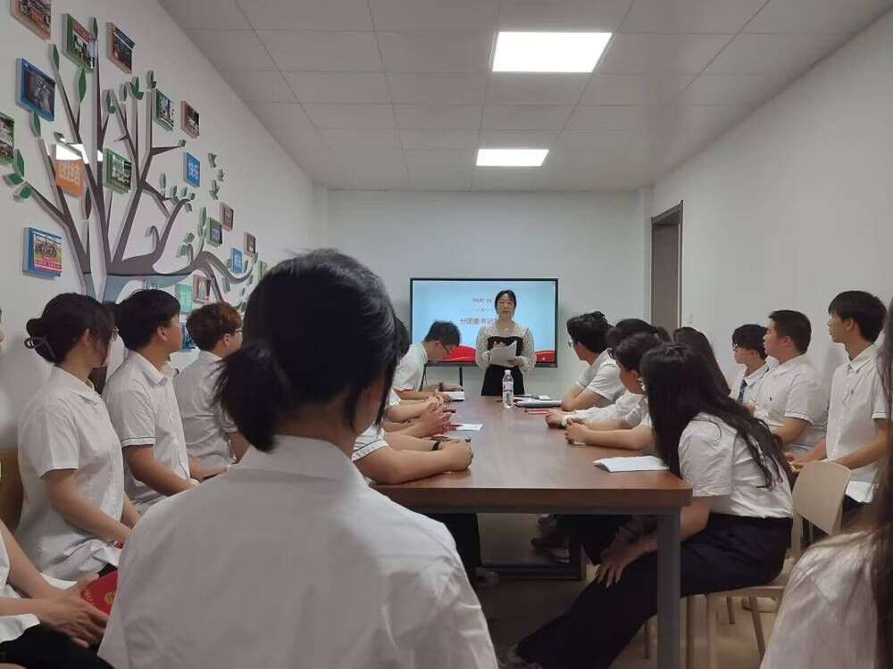 2023级学生胡明丰代表新团员发言,表达了加入共青团的激动心情,并承诺做到树立远大理想、勇于创新拼搏、严格要求自己。随后王琳琳老师发言,对新团员的加入表示欢迎与祝贺,同时希望新团员继承和发扬“五四精神”,做信仰坚定的有志青年、知行合一的有识青年、务实创新的有为青年。最后,新团员的入团仪式在高昂的团歌声中落下帷幕。入团仪式结束后,全体团员纷纷表示:要勇担团员责任,不负时代、不负韶华,在青春赛道上奋力奔跑出当代青年的最好成绩。