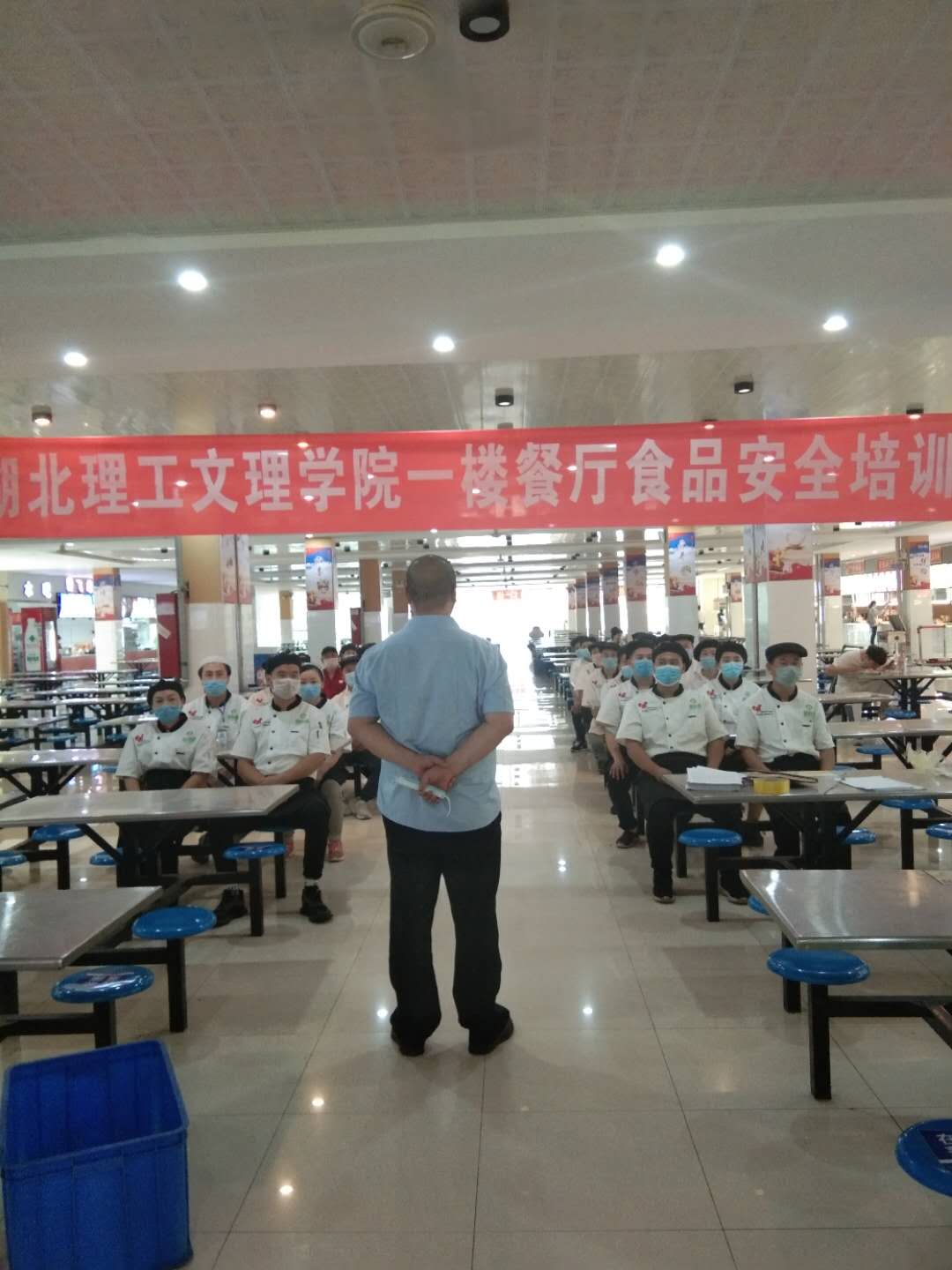 民以食为天,食以安为先,食品安全无小事。为了切实维护师生的身体健康和生命安全,不断提高食堂工作人员卫生、责任意识,进一步强化平安食堂建设,9月17日,我们一楼食堂组织食堂从业人员在一楼食堂大厅召开食品安全知识培训。会议由一楼食堂经理张军主持,食堂全体员工参加了此次培训会。