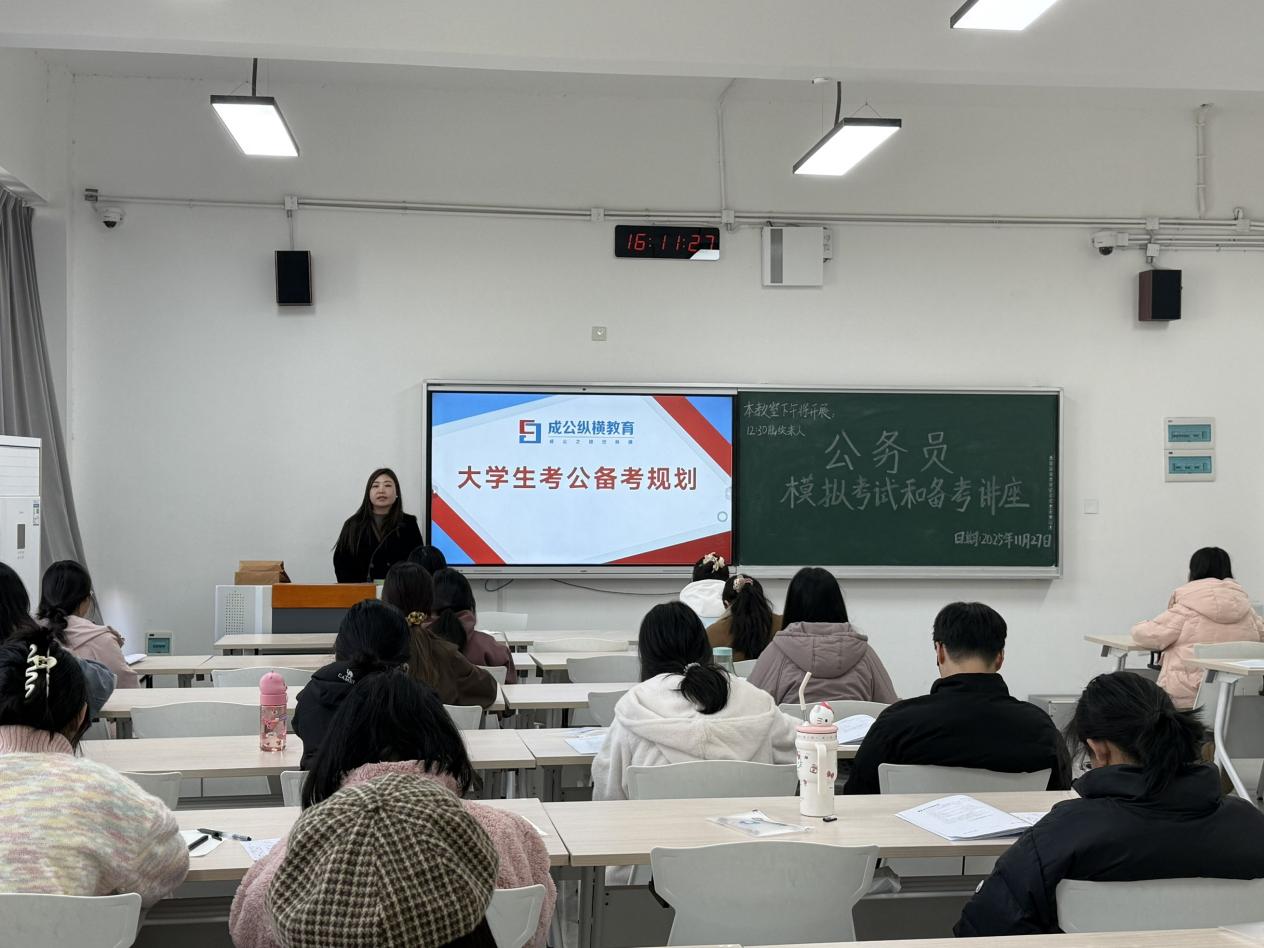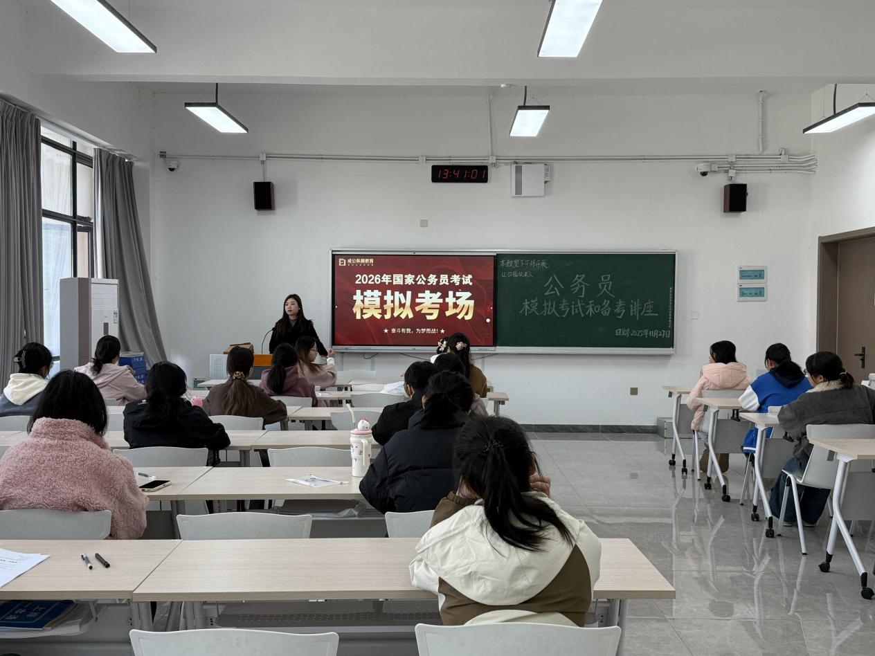 (通讯员 吴新怡 袁想)为了更好地助力备考同学熟悉公务员考试流程,提升应试能力,同时帮助他们提前掌握国考应试节奏,合理锚定未来考公就业导向,12月2日,公务员模考大赛暨备考讲座在东津校区举行。