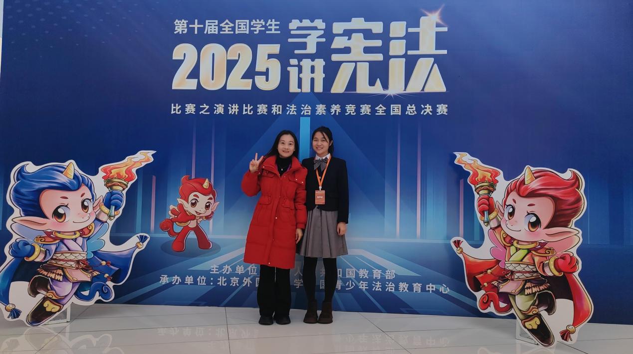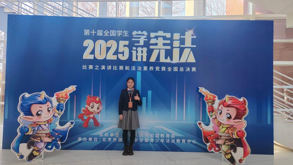 (经管学院 蒋隽雅)近日,由教育部主办的第十届全国学生学宪法讲宪法法治素养竞赛全国总决赛在京落下帷幕。作为教育系统规格最高、覆盖面最广的法治素养竞赛平台,此次赛事汇聚了全国各省、自治区、直辖市、特别行政区的顶尖学子。法学会成员王萌,在社团指导教师蒋隽雅的指导下,从全省冠军一路过关斩将,最终斩获全国二等奖,创下我们在该赛事中的历史最佳成绩,为学校赢得了荣誉。