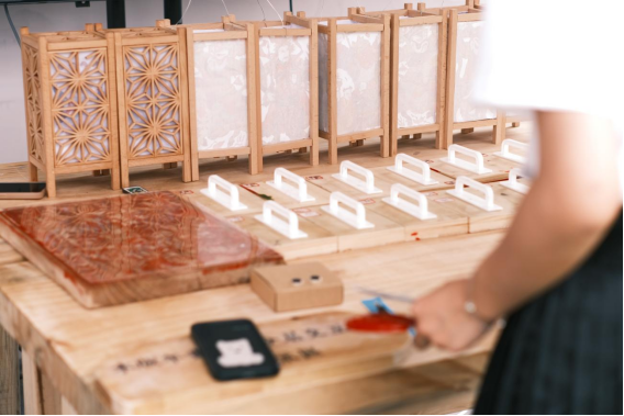 艺术与传媒学院院长曹树进表示,在这次大艺节艺术工坊展示中,我们将民间传统美术雕版带到了现场,让现场观众可以亲手制作一些老河口木版年画相关文创产品,比如精致DIY小福卡、便携小团扇,这种互动体验的展演形式受到现场一致好评。