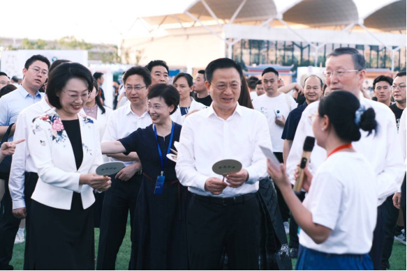 教育部党组成员、副部长、总督学王嘉毅,湖北省委常委、襄阳市委书记王祺扬,湖北省副省长陈平,国家艺术基金管理中心主任王明亮,湖北省教育厅党组书记、厅长周静等上级领导,我们副董事长赵乔、党委书记叶永涛、校长杨海浪等校领导亲临现场,观看项目展示情况。