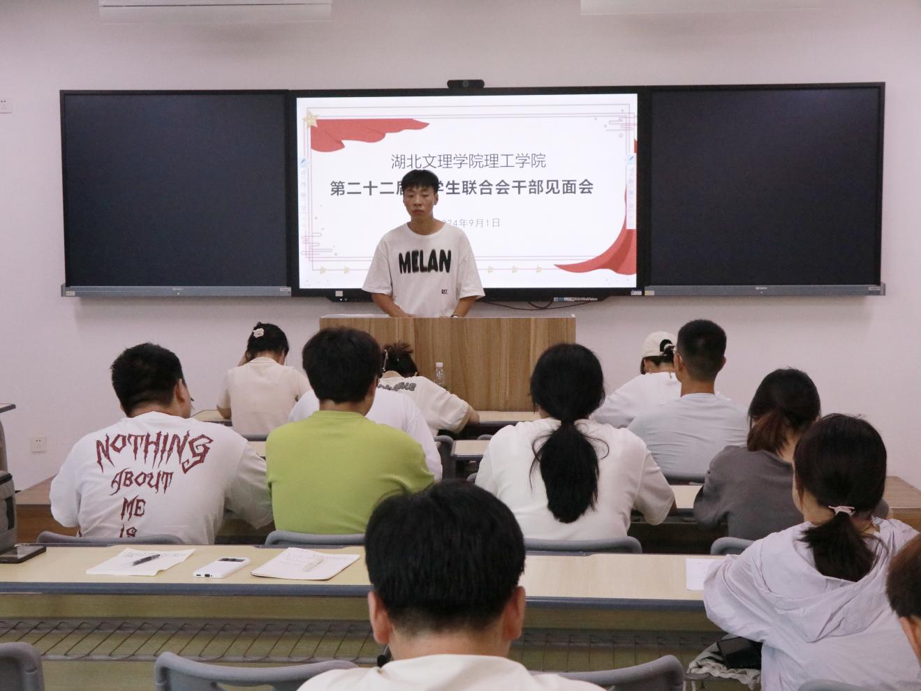 (校团委 司泽坤)9月1日,第二十二届校团学组织工作部署暨干部见面大会在1教205召开。学生工作部部长、团委书记宋功成,学生工作部副部长、团委副书记黄洁,团委老师杨丽华、吴念以及全体学生干部参加本次会议。