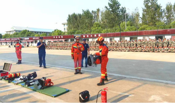 活动第一阶段,消防安全知识培训在运动场拉开序幕。首先,贾娴雅强调了消防安全的重要性;随后,吴天旭和李娜讲解了消防安全的基础知识,包括火场逃生的正确方法、如何正确使用灭火器和消防水带以及在火灾中如何进行自我保护。讲解员和学生互动提问,部分学生上台演示报警技巧及在逃生时应采取的防护措施,学生们全神贯注,纷纷表示受益匪浅。