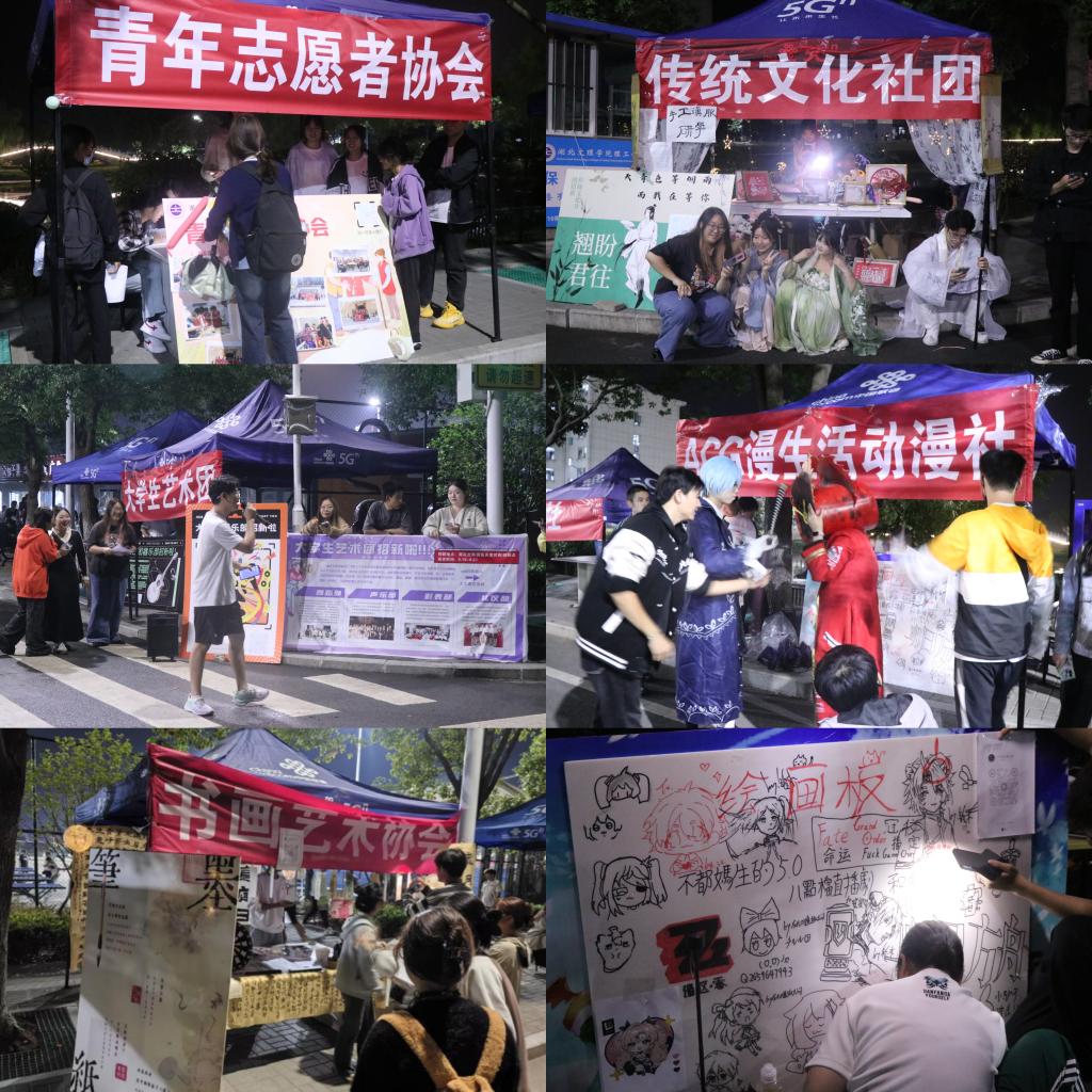 活动期间各社团纷纷使出浑身解数,通过海报、现场表演和文化艺术作品展示等方式展示社团特色与魅力。书画艺术协会社员现场挥毫泼墨,书画作品笔锋游走间尽显中华古韵,引得同学们阵阵赞叹。大学生艺术团器乐部成员宛如技艺超凡的音乐魔法师,每一次演奏都是一场令人陶醉的魔法盛宴。AC漫生活动漫社充满了活力与创意,将热爱动漫的同学聚集在一起,共同追寻那份超越现实的梦想。