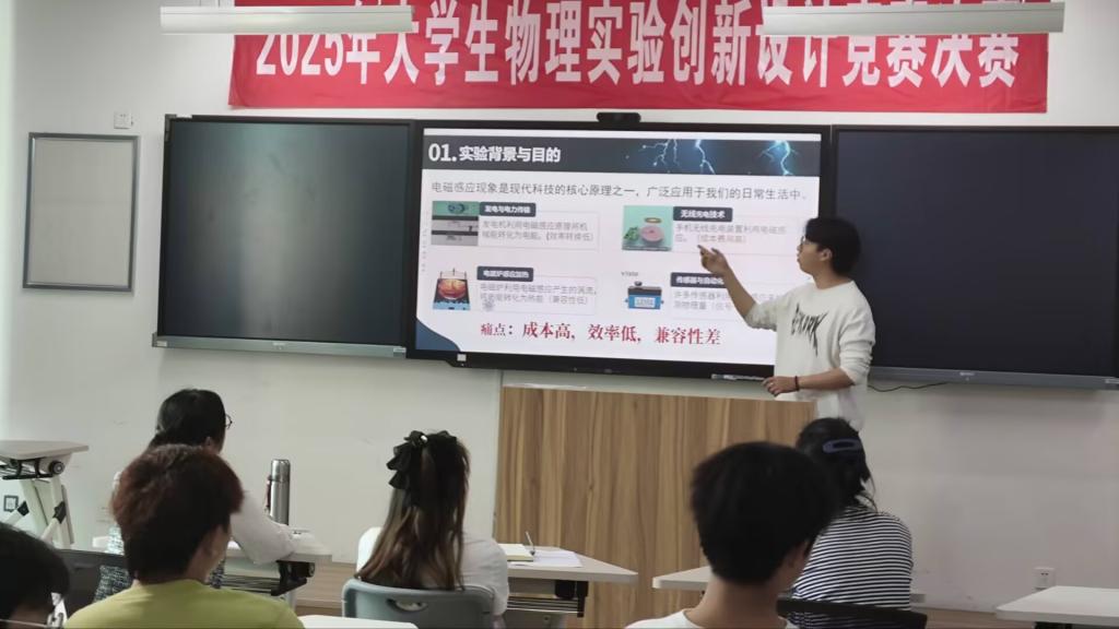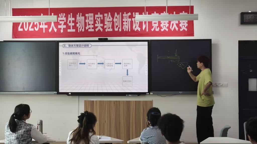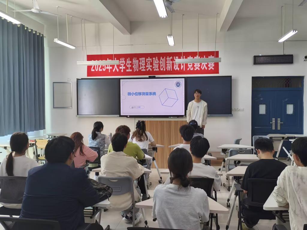 (电信学院 宁珍珍)为了进一步激发我们大学生对大学物理基础课程的学习兴趣和学习潜能,提高我们学生实验综合能力和创新设计能力,加强高等学校实践教学工作,激发学生实践创新兴趣,促进学生创新意识和创新精神培养,同时为2025年湖北省大学生物理实验创新设计竞赛选拔参赛队伍,4月10日下午,我们在1教102举办了校园大学生物理实验创新设计竞赛决赛。