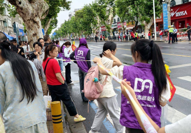 (教育学院 陈曦 李原栋)十年寒窗磨一剑,今朝出鞘试锋芒。 6月7日,当晨曦初露,高考的号角已然吹响。承载着万千学子的梦想与期待,樊城区高考考点外,一场充满温情的爱心护考行动正有序展开。共青团樊城区委员会联合我们教育学院晨曦青年志愿者协会共百余名志愿者,以青春之名,汇聚志愿力量,为高考学子和家长们送去贴心关怀与温暖。