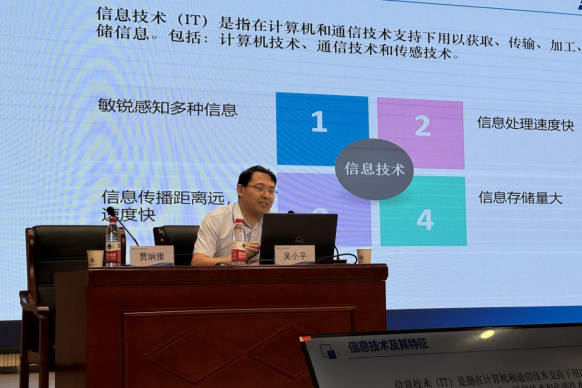 讲座中,吴小平以“从认识到实践:高等院校数字化转型”为题进行了专题报告。报告从信息、信息技术与信息化的基本概念入手,深入阐述了信息化的内涵及其核心特征。为帮助大家认识数字化,报告与实际结合,吴小平列举了大量案例,既有正面典型,又有反面案例。通过案例回答了数字化转型一些根本性问题,如“转什么”、“怎么转”,“谁来转”等。
