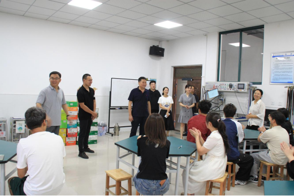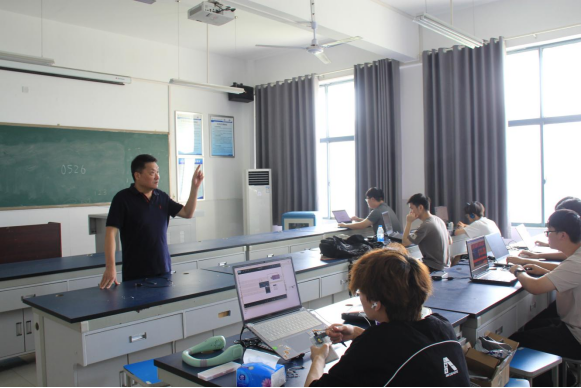 校领导一行首先来到教学楼,为备战学科竞赛的师生们送去关怀与慰问。据介绍,我们今年暑期共有100余名师生在校备战中国国际大学生创新大赛、金相技能大赛、中国机器人及人工智能大赛、全国大学生电子设计竞赛等十余项省级以上的学科竞赛。