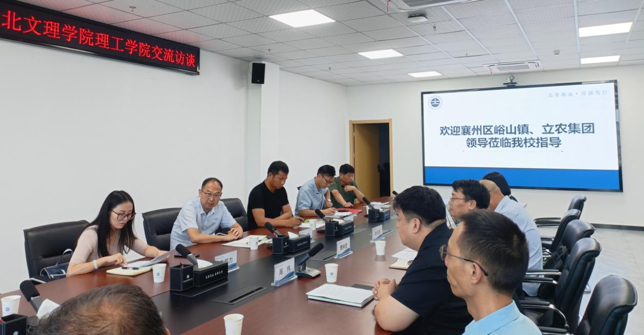 (艺传学院 万婧)7月15日上午,襄州区峪山镇、湖北立农集团相关负责莅临我们就“校地协同、产教融合”开展合作交流。襄阳异业联盟秘书长张洪江、襄阳汉陶非遗第六代传承人曹前飞老师、自媒体梦襄阳杨晓振老师,以及我们副校长周伟、教学科研部部长刘铁、艺传学院院长曹树进等一同参加此次活动。