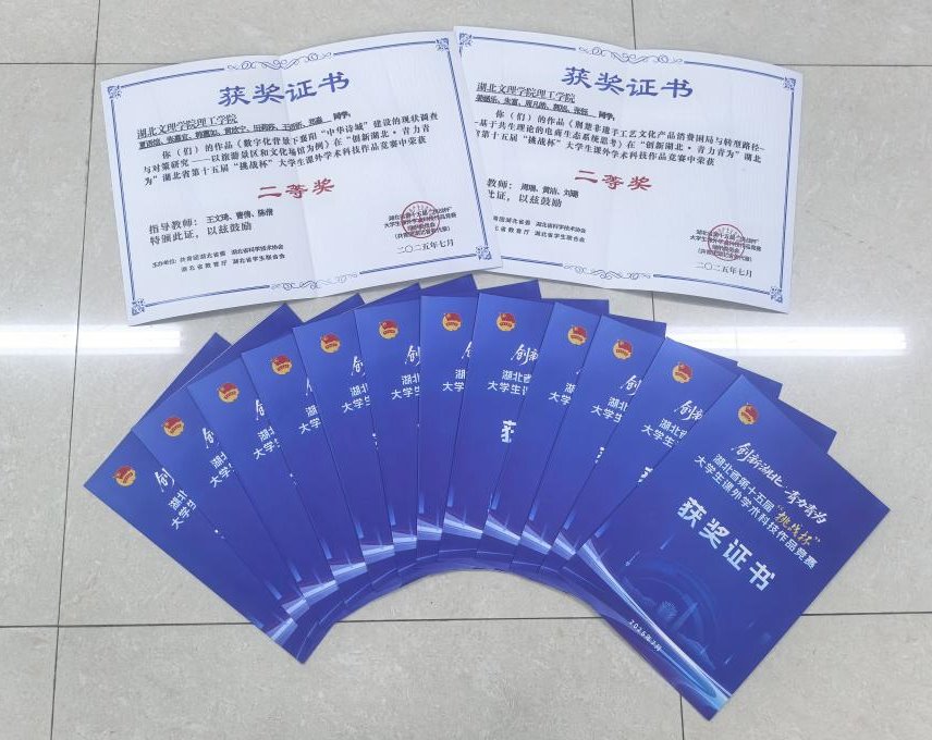 (通讯员 黄涵涵)近日,湖北省第十五届“挑战杯”大学生课外学术科技作品竞赛评选结果揭晓,我们参赛作品获二等奖2项、三等奖12项,共计获得奖项14项。