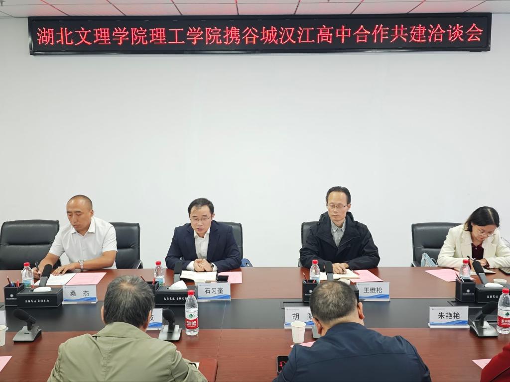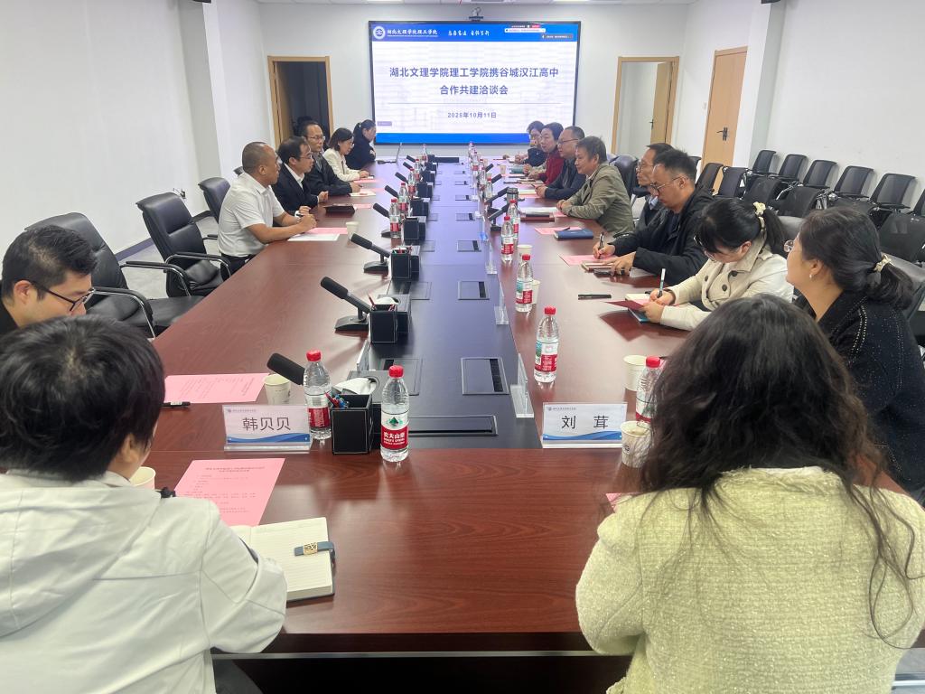 (招生就业部 王刚)10月11日上午,我们与谷城汉江高中合作共建洽谈会在图书馆722会议室举行。会议由招生就业部部长胡阳主持,副校长汪波、教学科研部部长刘铁、发展规划部部长王寅龙、试点专业学院党政负责人及专业课教师,与汉江高中党支部书记石习奎、校长王维松一行共同出席了会议,双方就深化校校合作、共育优秀人才进行了深入交流,并展望了国际化联合培养的新路径。