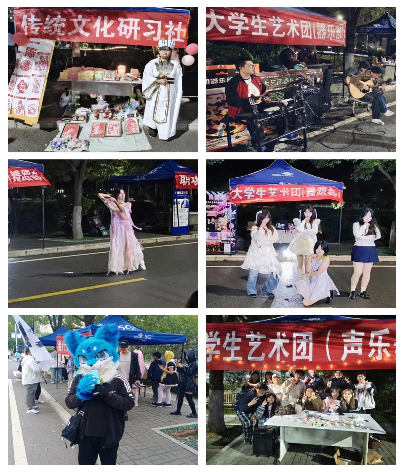 活动中,各学生社团纷纷亮出“绝活”。大学生艺术团舞蹈部的成员以灵动舞姿演绎青春韵律,每一个舞步都充满青春张力;器乐部成员化身“音乐精灵”,乐器演奏或激昂或悠扬,为现场带来一场听觉盛宴;声乐部的同学以美妙歌声传递情感,唱响青春之声;动漫社则充满创意与活力,成员们的cosplay展示和动漫互动游戏,为喜爱动漫的同学打造了一个充满幻想的次元空间。各社团通过这些精彩展示,充分彰显了自身特色与魅力。