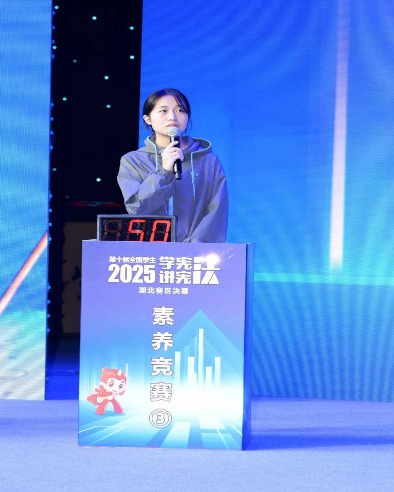(经管学院 蒋隽雅)近日,由湖北省教育厅主办的第十届全国学生“学宪法 讲宪法”素养竞赛湖北赛区决赛圆满落幕。我们法学学子王萌凭借深厚的宪法素养与出色的临场表现,从全省22所高校的精英选手中脱颖而出,力压华中科技大学、华中师范大学等强劲对手,斩获省赛第一名,并将作为湖北省高校组唯一选手参加全国总决赛。这是我们乃至襄阳市高校在该赛事中取得的历史最佳成绩,实现重大突破。