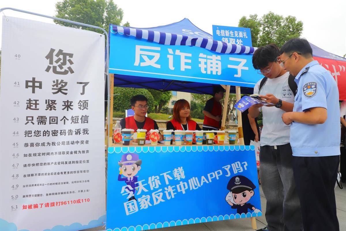 为提高新生的反电信网络诈骗意识,守好新生和家长们的“钱袋子”,电信学院现场设置“新生反诈铺子”,联合派出所民警们现场普及防诈知识,发放“反诈”宣传册。“新生反诈铺子”旁设置的一组“反诈视力表”也引起了新生和家长的兴趣,志愿者们结合各种常见的诈骗手段为新生测试防骗“视力”,增强学生防范电信网络诈骗的意识。