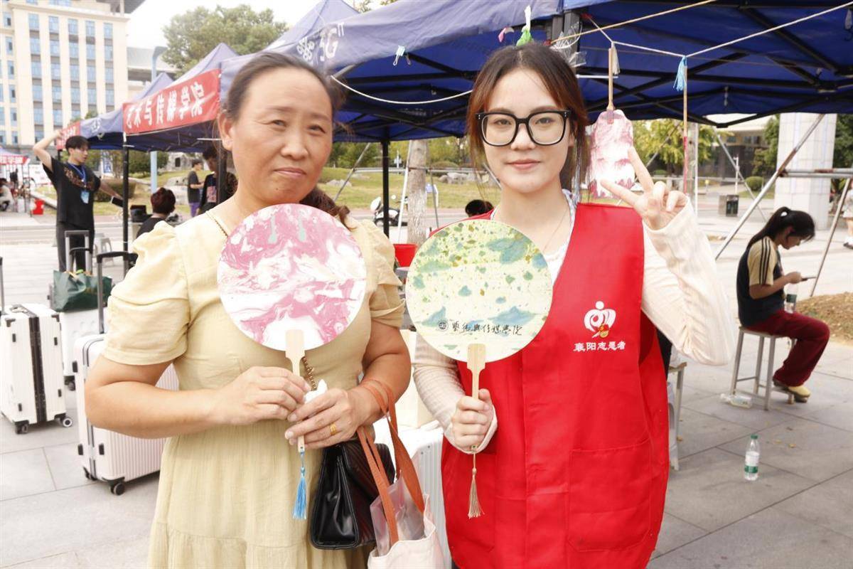 该校艺术与传媒学院以扇为笔,以水作画,采用非遗漆染工艺,现场制作手工漆扇送给新生,让他们感受传统文化的魅力。同时,学院将专业直播设备搬到迎新现场,现场直播漆扇制作过程,展示新生报到实况,让师生家长相聚云端。