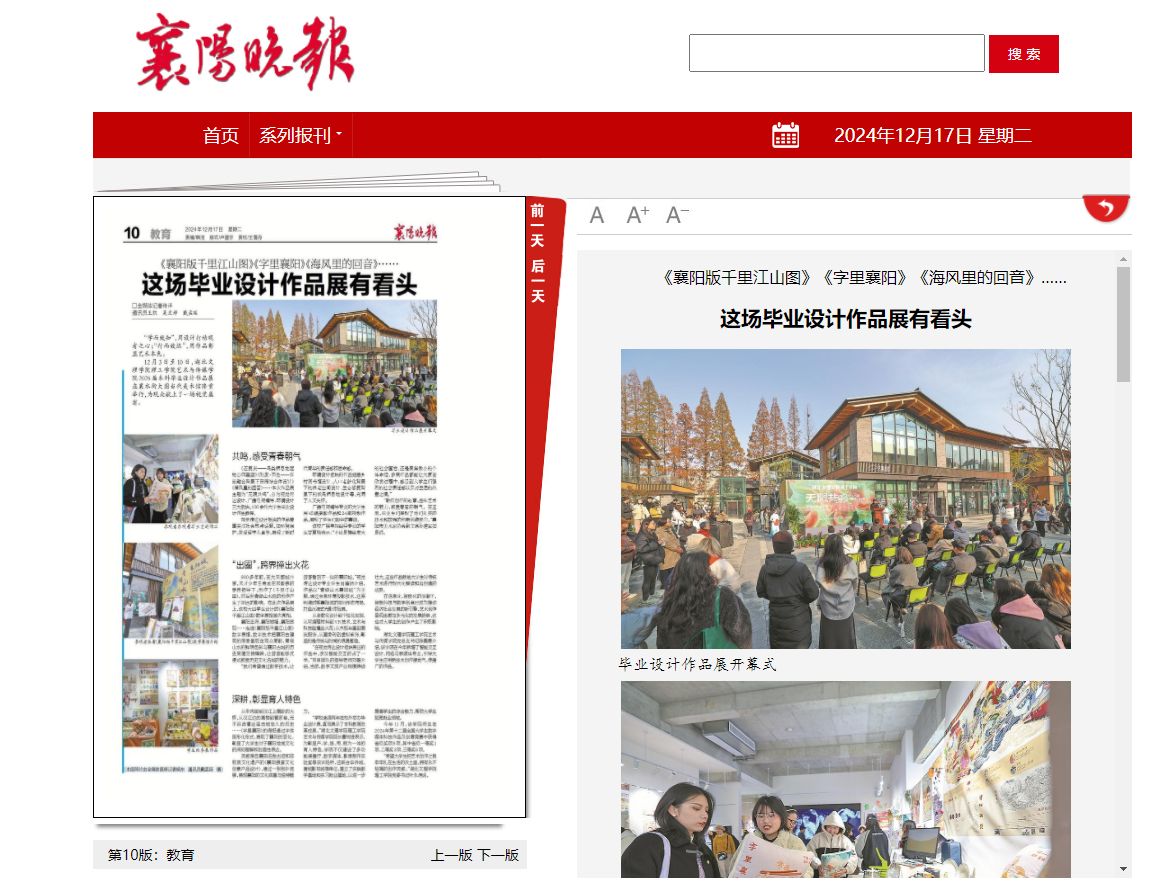 900多年前,在大宋都城汴京,天才少年王希孟在宋徽宗的亲自指导下,创作了《千里江山图》,对后世青绿山水画的创作产生了深远的影响。在此次作品展上,该校大四学生设计的《襄阳版千里江山图》数字展馆首次亮相。