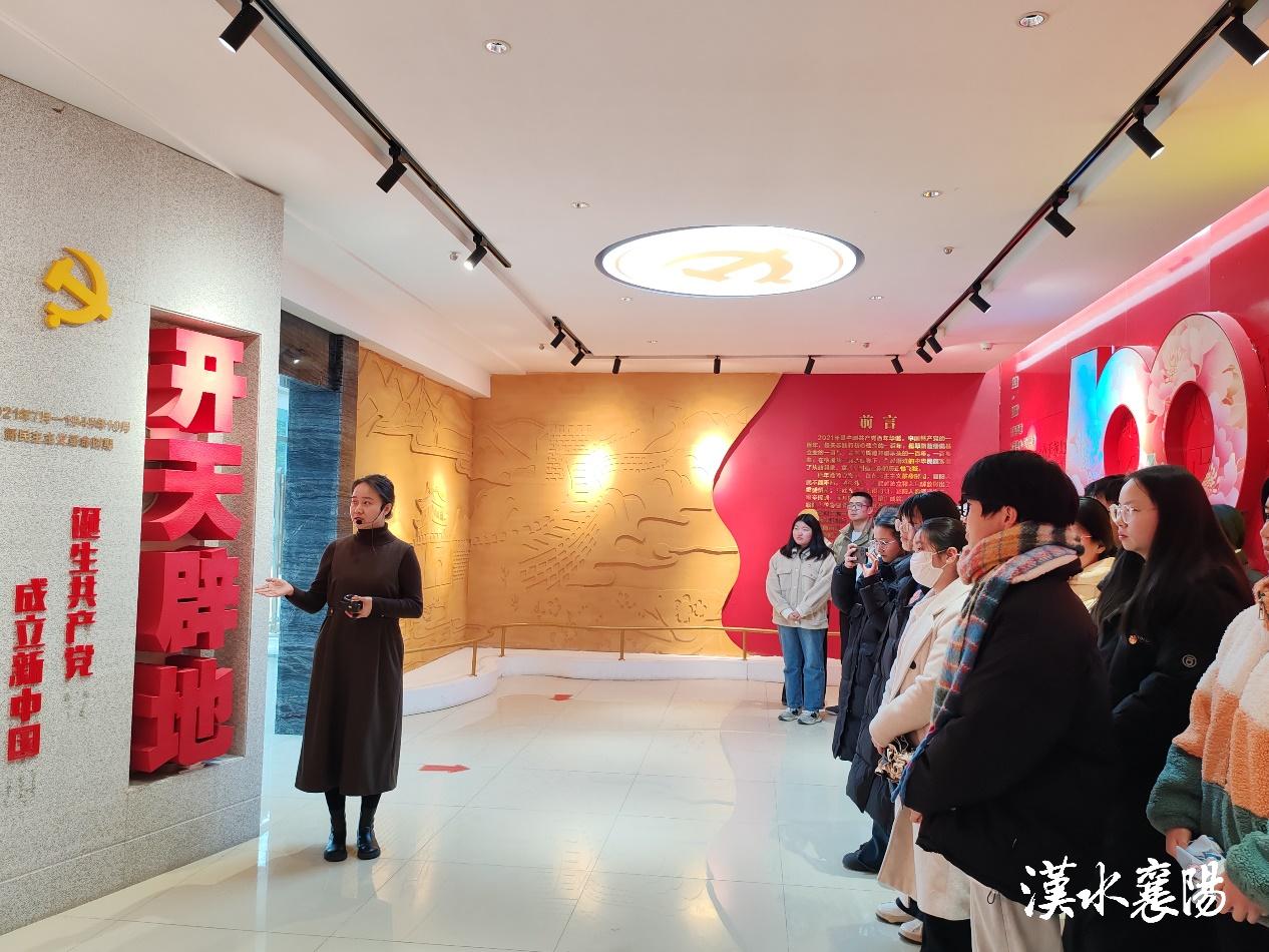 紧接着师生共同参观了襄阳市庆祝中国共产党成立100周年主题展览《百年风华》,讲解员向大家介绍了襄阳在新民主主义革命时期的历史、襄阳早期的党组织、襄阳地方党组织积极开展抗日宣传及发展和组织抗日武装情况,襄阳早期革命先驱和英雄人物的事迹等等。