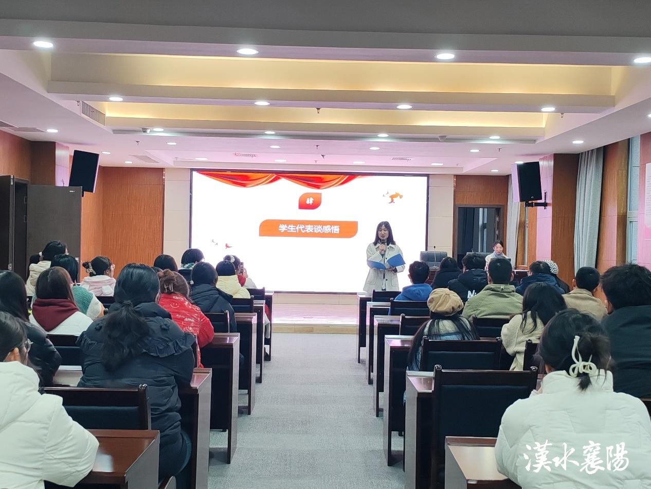 在襄阳市档案馆三楼会议室,师生们集中观看了《红色档案—襄樊战役》专题片。影片以珍贵的历史影像、照片档案、人物专访和生动的叙事,再现了襄樊战役的烽火岁月。从战略部署到军民同心,从战场硝烟到胜利凯歌,革命先辈们的英勇事迹和家国情怀深深触动了在场师生。