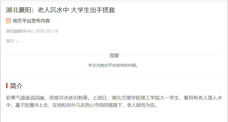 上一条:【汉水襄阳】老人落水,命悬一线!几位年轻人冲了上去!