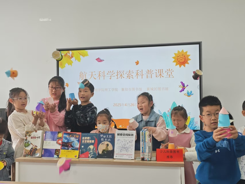 活动现场特别设立“航天科普图书角”,精心推荐《出发吧!太空探险家》《解密空间探测》《给孩子的航天科学》等20余册少儿科普读物。图书馆工作人员为孩子们现场办理借阅手续,鼓励大家“把宇宙带回家”。“这些图书就像通往太空的‘文字飞船’,希望孩子们在阅读中延续探索热情。”襄阳市图书馆负责人表示。