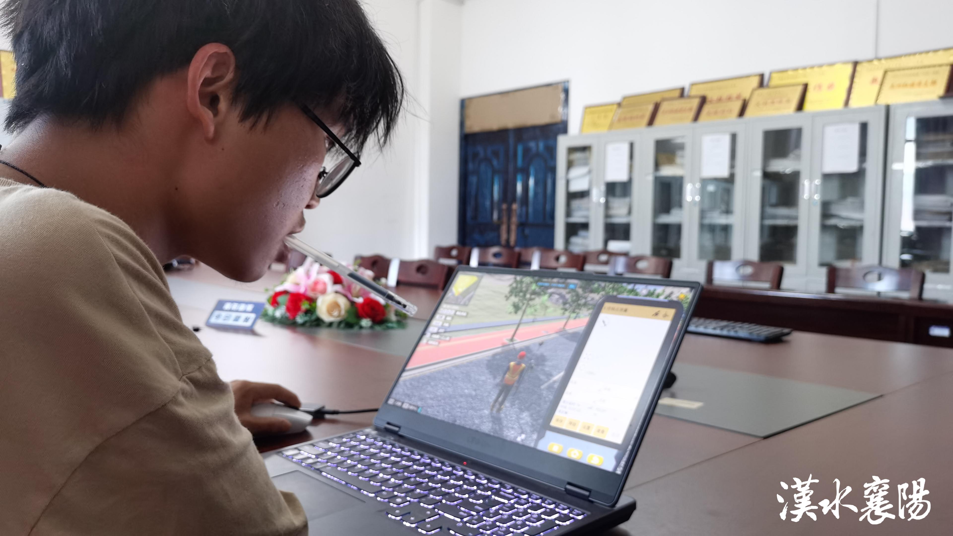 经过20多天的持续练习,终于在比赛前,谭学鋆才勉强把左手和嘴的动作协调好。竞赛当天共有来自湖北省的24所高校近1000组参赛者同台竞技。比赛中谭学鋆用嘴咬着笔敲击着电脑键盘,不到5mm的键盘,也给他的精准操控带来了极大的阻碍。最终他在规定时间内完成并提交成果,获得二等奖的好成绩。