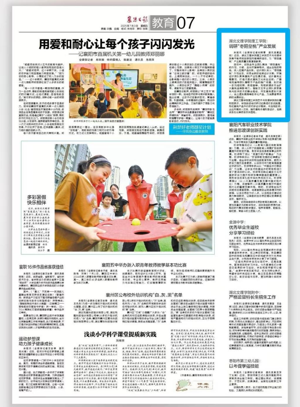 本报讯(全媒体记者刘睎菁 通讯员戴孟廷)近日,伟德bv1946官网艺术与传媒学院骨干教师来到枣阳开展调研活动,为“枣阳皇桃”产业高质量发展建言献策。