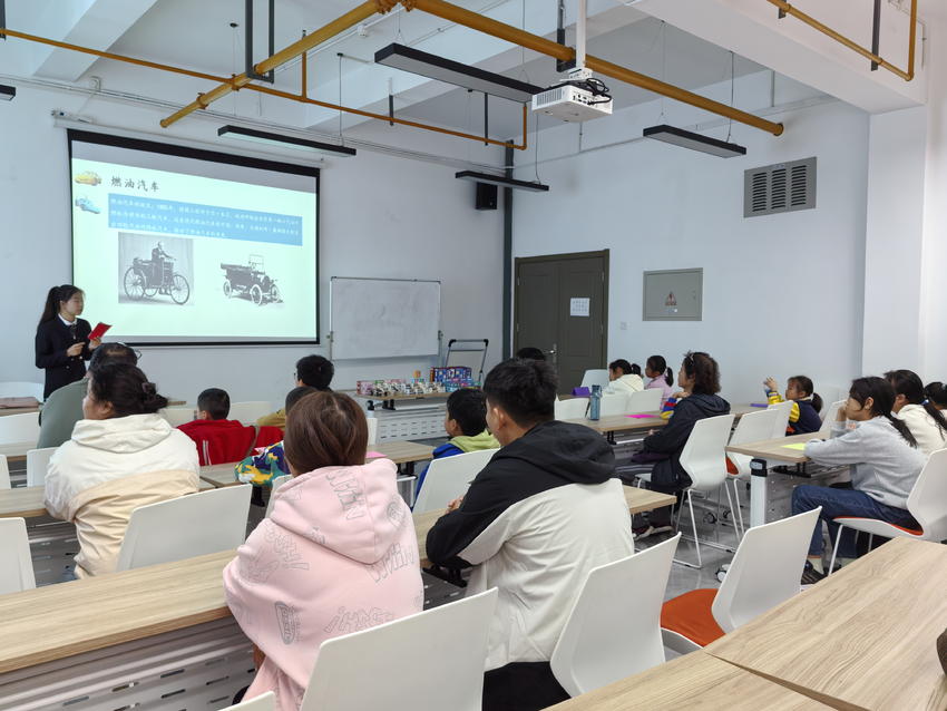 活动伊始,志愿者通过生动的PPT讲解,为小朋友们勾勒出汽车从蒸汽时代到智能电动时代的科技演进画卷。随后“汽车达人闯关赛”趣味知识问答让孩子们在思考中加深了对科技原理的理解;“汽车图案创意填色”让孩子们尽情挥洒想象力,描绘心中的未来座驾;而“气球动力车挑战赛”和“太阳能小车DIY”则将活动推向高潮。孩子们在志愿者的指导下,分小组动手实践,亲眼见证简单的物理原理如何转化为小车前进的动力,亲身体验绿色能源的神奇,现场气氛热烈,欢声笑语不断。