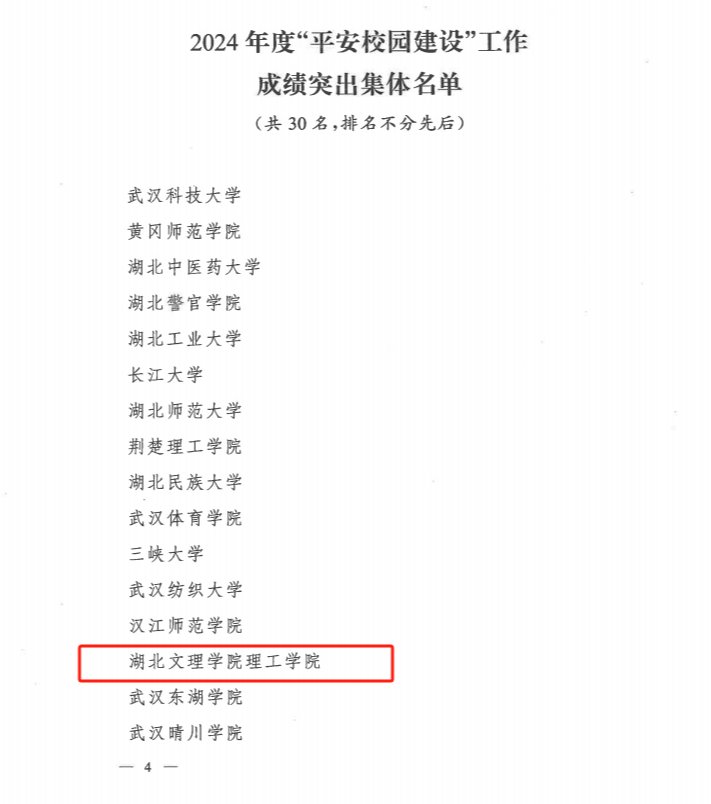 (后勤服务部 徐晴)近日,湖北省公安厅印发了《关于表扬2024年度“平安校园建设”工作成绩突出集体和个人的通报》。我们获评2024年度省“平安校园建设”工作成绩突出集体,成为民办同类院校获奖的3所高校之一,学校已连续两年获得此项荣誉。