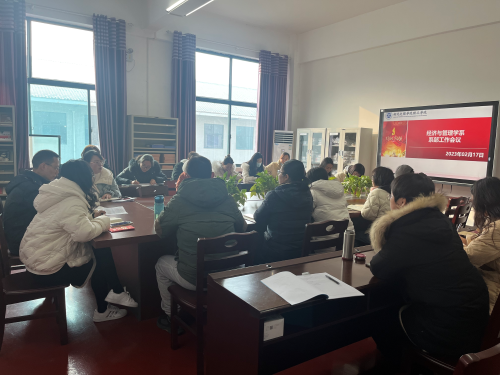(经管系 周晓桥)新学期新征程,为进一步提高工作效率,扎实推进新学期工作进程,2023年2月17日上午,经济与管理学系在4教309会议室召开新学期第一次系部工作会议,全体教职工参会。