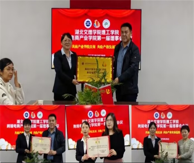 会上,跨境电子商务专业负责人姚丹宣读理事会决定,明确产业学院实行理事会领导下的院长负责制,由朱靖任理事长,企业代表金胜勇与姚丹任副理事长,为学院规范运行筑牢制度根基。朱靖随后颁发产业学院牌匾,并为3位行业专家授予“产业教授”聘书,践行“校企协同、双师共育”理念。金胜勇汇报五年发展规划,提出构建“政府引导+平台赋能+校企共建+企业实践”的产教融合共同体,明确5年内培养超千名全产业链实战人才,同时推动“跨境电商 + 产业带”融合、培育省级产业园等目标,助力教育链与产业链衔接。襄阳市跨境电商协会会长曾文燕肯定了会议价值,朱靖表示学校将以理事会为纽带,深化多方合作,打造人才培养新高地。