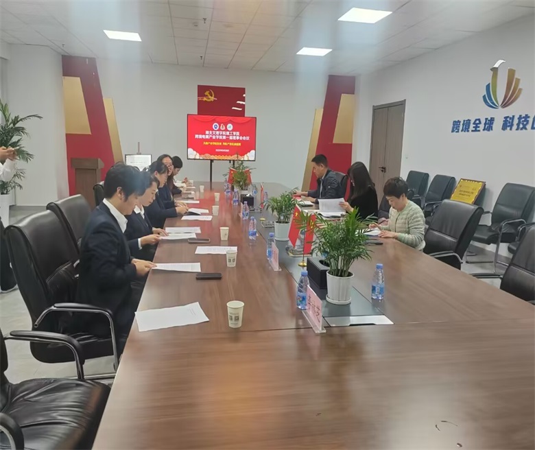 (经管学院 李林芝)9月28日下午,我们跨境电商产业学院第一届理事会会议在襄阳自贸片区跨境电商产业园召开,主题为“共商产业学院发展,共绘产教发展蓝图”。襄阳市跨境电商协会会长曾文燕、我们经济与管理学院副院长朱靖、襄阳自贸区跨境电商运营管理有限公司总经理金胜勇、襄阳佰新职业技能培训学校校长曾荣玲、我们跨境电子商务专业负责人姚丹及七名专业教师参会。