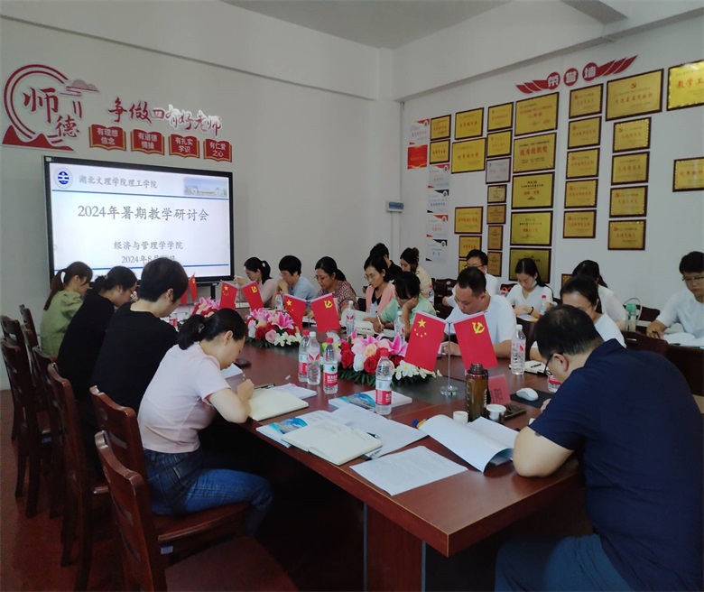 (经管学院 周晓桥)8月26日下午,经济与管理学院在4教309会议室开展2024年暑期教学研讨会,会议由学院副院长朱靖主持,全体专任教师参加会议。