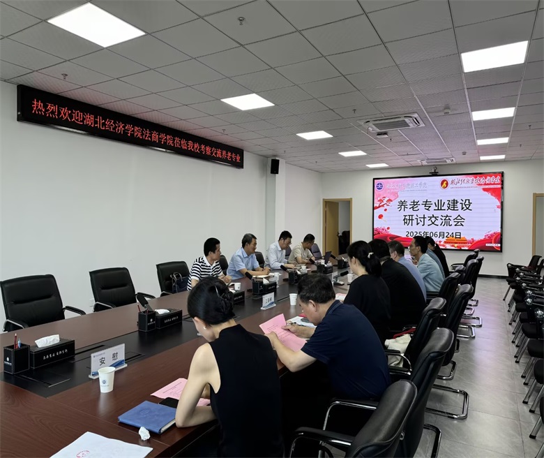 (经管学院 周晓桥)为促进高校间互相交流,学习借鉴人才培养经验,6月24日,湖北经济学院法商学院副校长龚振中一行4人来我们考察交流养老专业,副校长汪波、副校长周伟、教学科研部和经济与管理学院热情接待,组织开展座谈交流和实训室参观。
