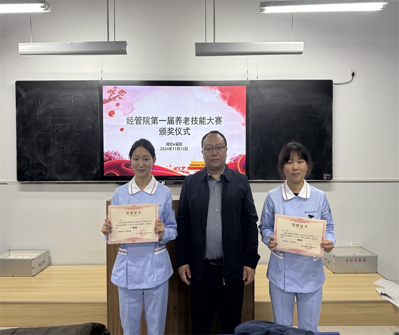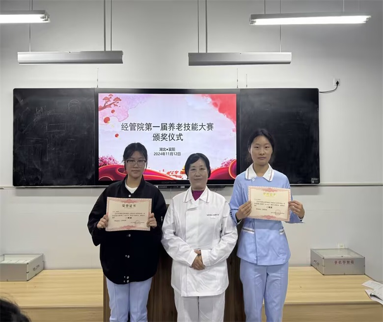 学院领导高度重视此次比赛,院长胡阳出席颁奖典礼并为获奖学生颁发证书。胡阳表示,首届养老技能大赛的举办是学院在实践育人方面的一次积极探索,通过比赛,学生得以锻炼和展示养老照护技能,这为其职业生涯开启了坚实的起点。未来,学院将继续在养老专业教育中大胆创新,依托校企协同育人平台,努力提升学生的职业素养与实际操作能力,不断培养更多适应养老行业需求的高素质应用型人才。